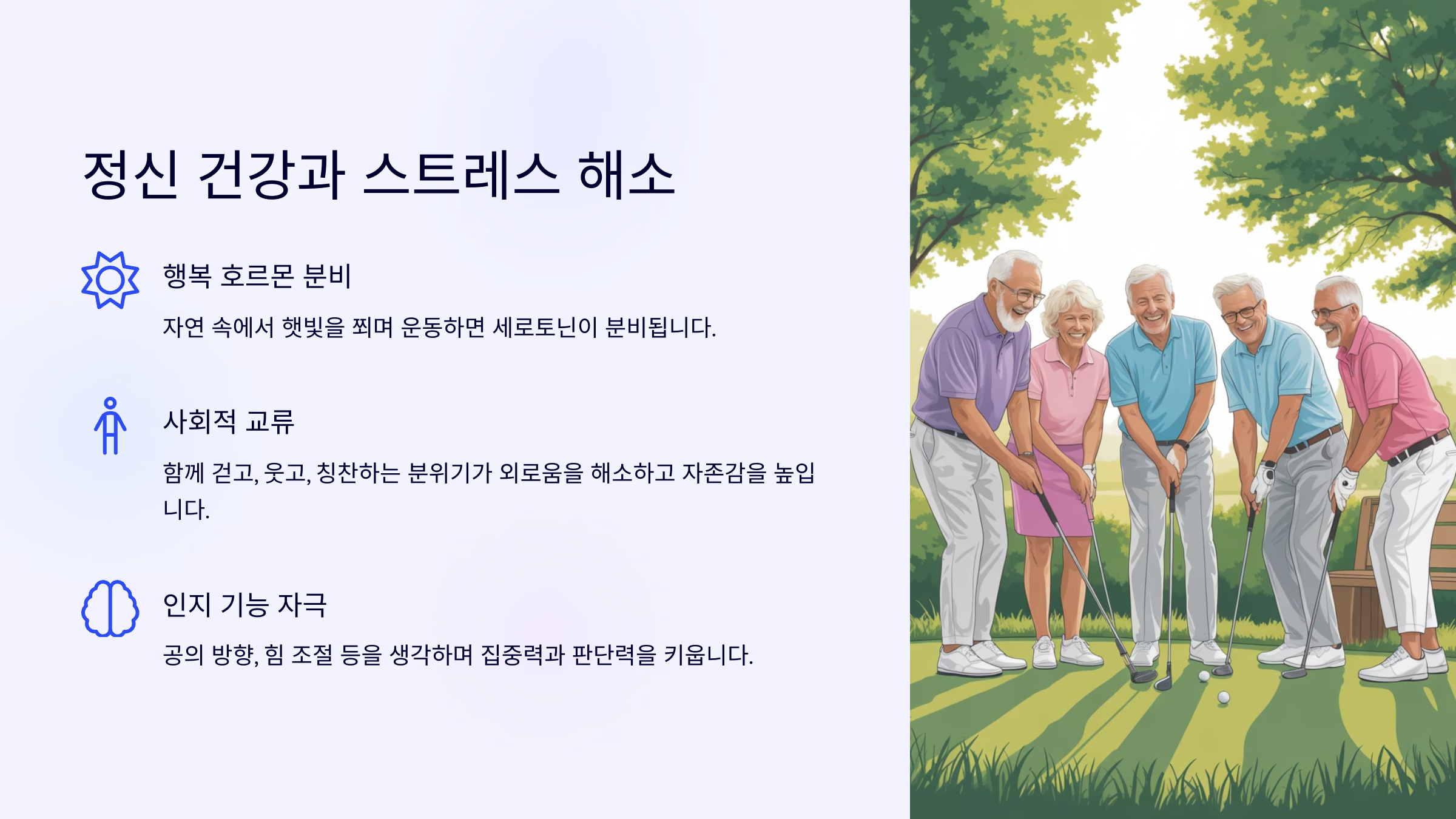 몸뿐만 아니라 마음까지 챙겨주는 파크골프! 다음은 노년층에게 특히 좋은 점을 이어서 알려드릴게요. 👵👴