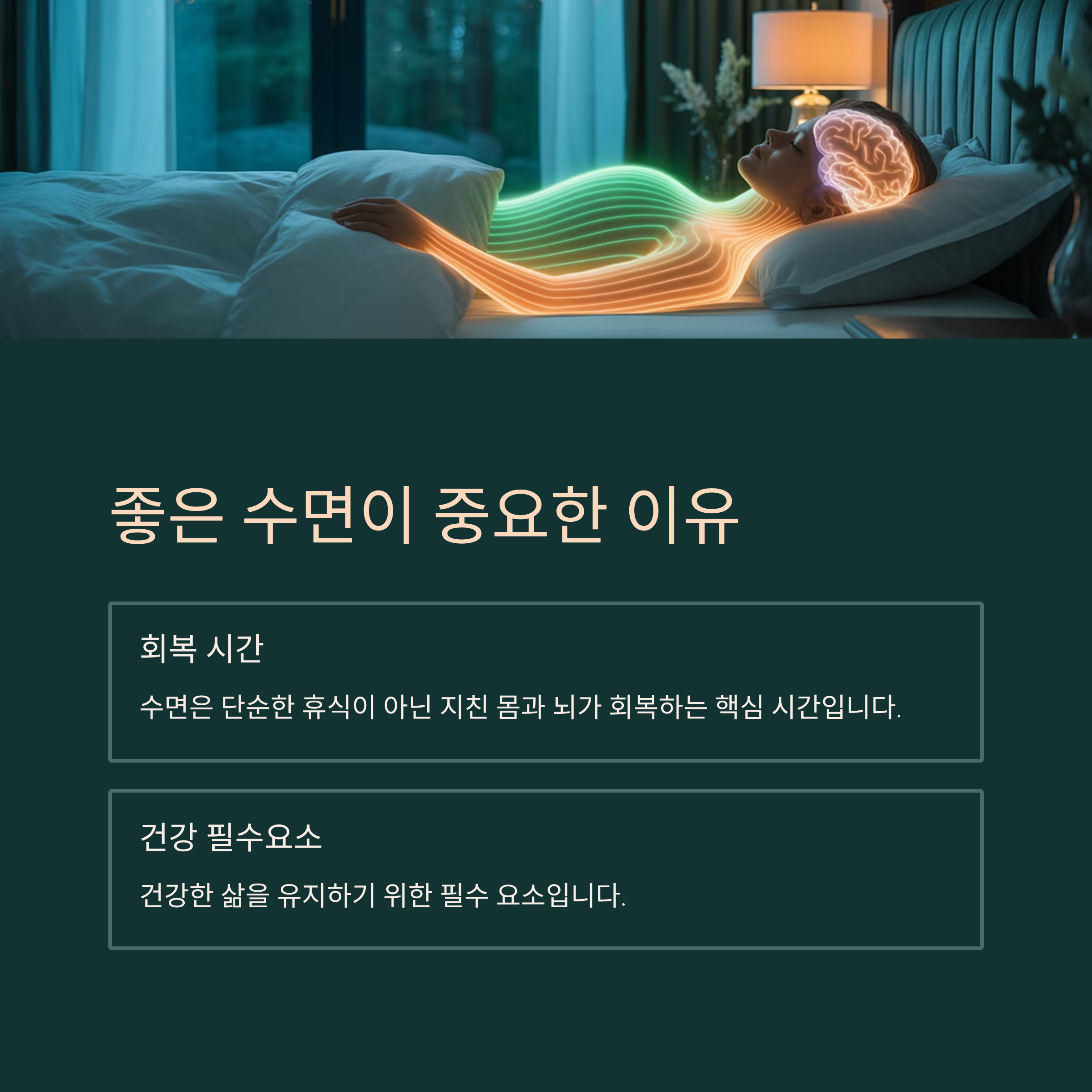 숙면은 그 어떤 약보다 강력한 자연 치유제예요. 이제부터는 ‘자는 시간’보다 ‘어떻게 자는가’를 고민해볼 차례예요. 다음 섹션에서 루틴부터 살펴볼게요!