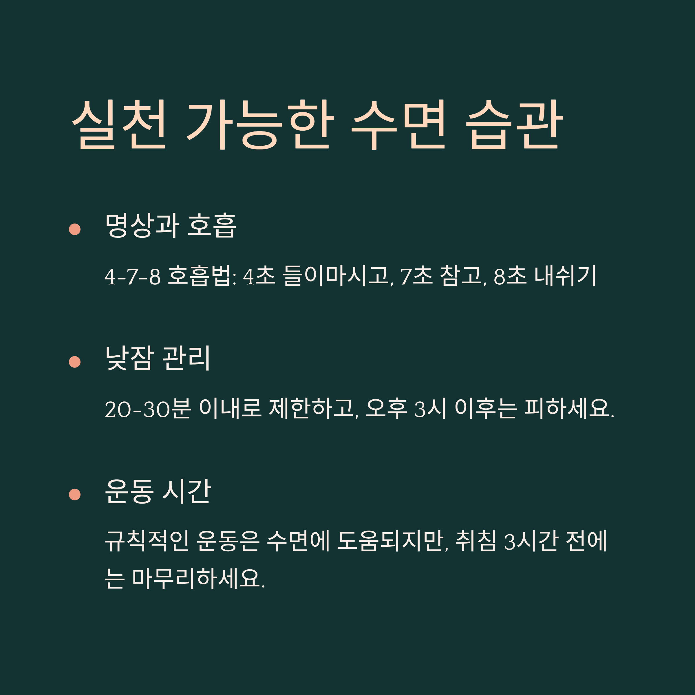 ※ 본 글은 일반적인 건강 정보를 제공하는 콘텐츠이며, 수면 관련 질환이나 만성 불면증은 전문가의 진단과 상담을 받는 것이 중요해요. 개인 차이를 고려하여 적절히 조절해 주세요.