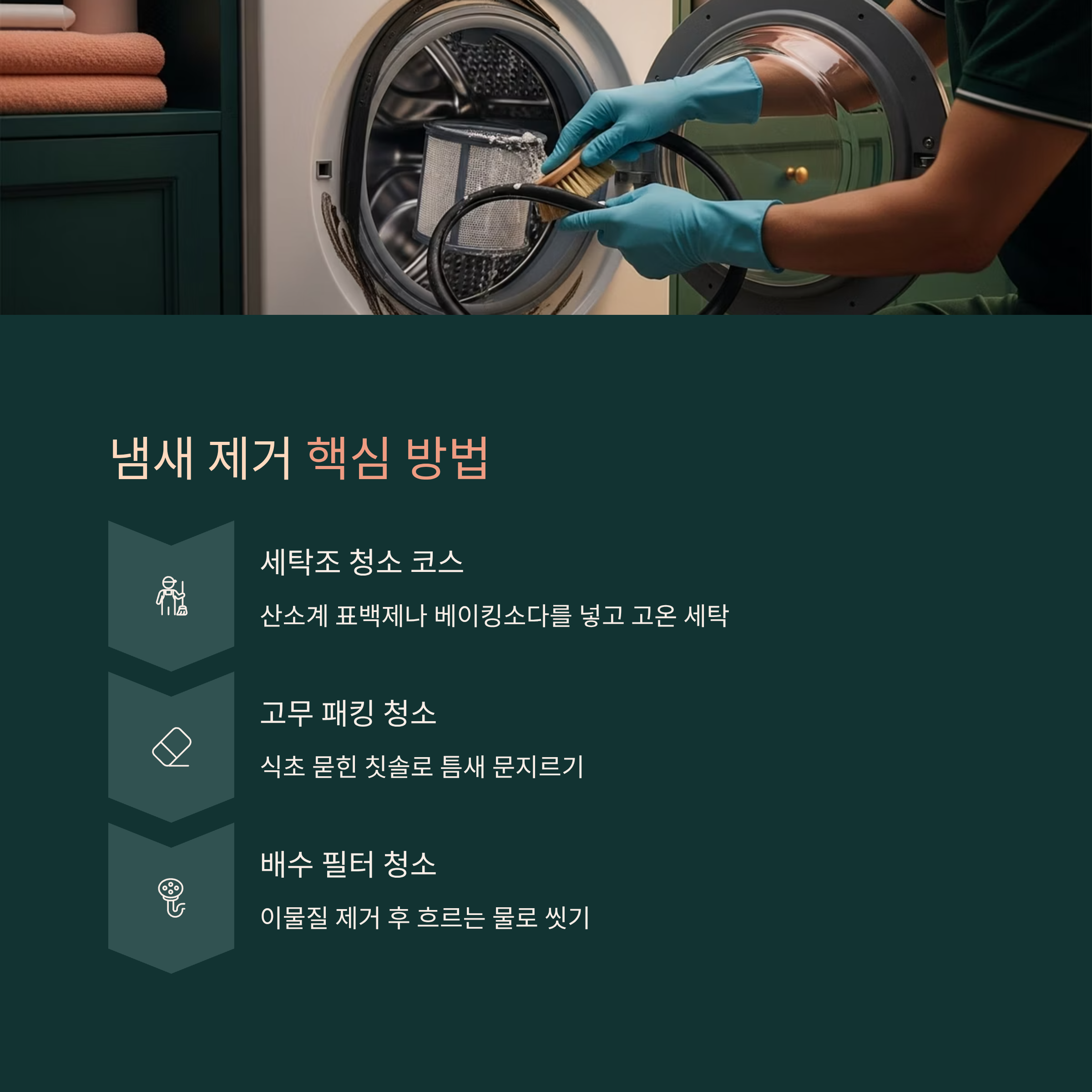 이렇게 원인을 부위별로 알면, 어디부터 청소해야 하는지 방향이 잡혀요. 다음 섹션에서는 본격적으로 냄새를 없애는 방법을 단계별로 알려줄게요.
