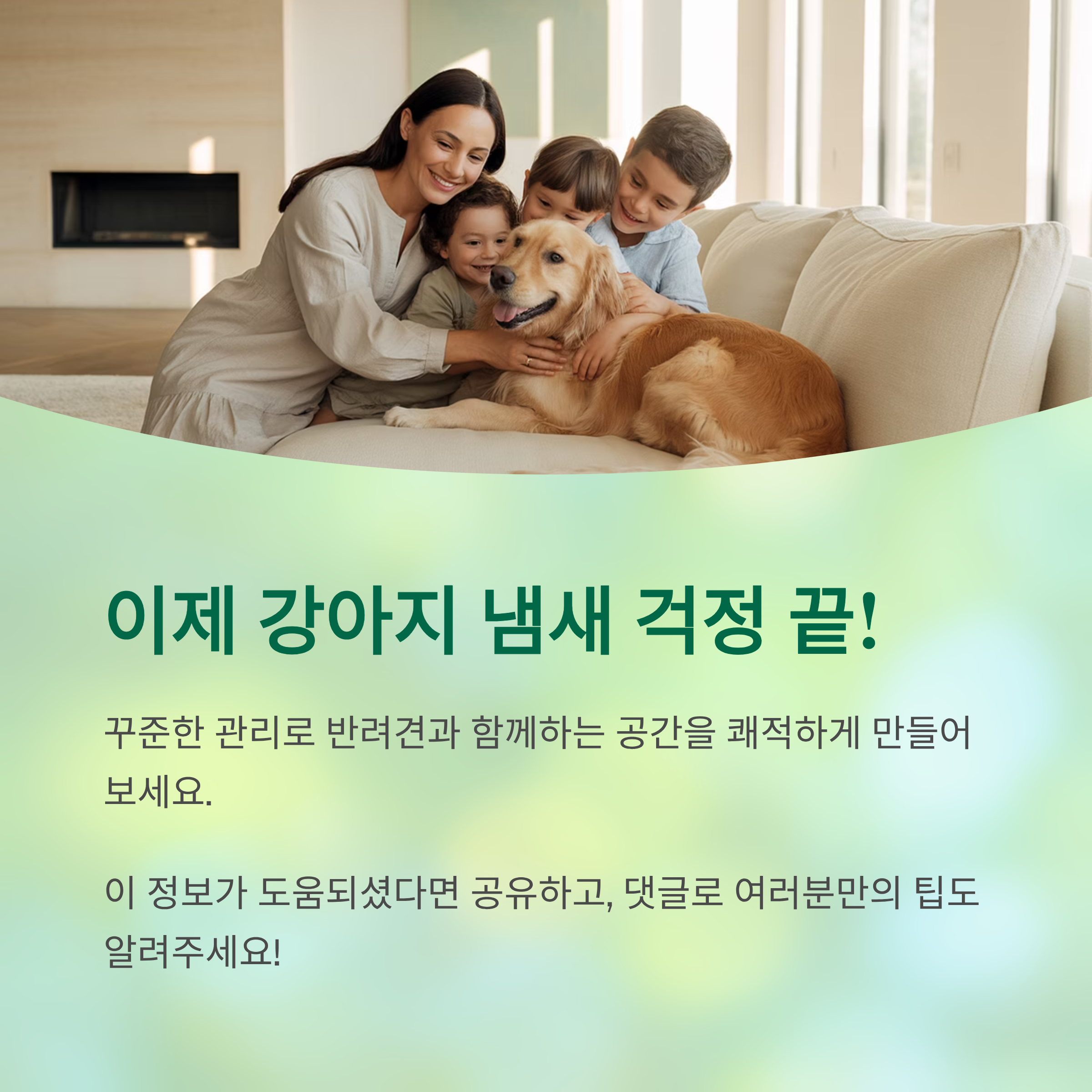 반려견과 함께 깨끗하고 쾌적한 공간에서 지내는 건 누구나 원하는 일이에요. 이 글을 통해 여러분의 공간이 더 상쾌하게 변화되길 바래요!