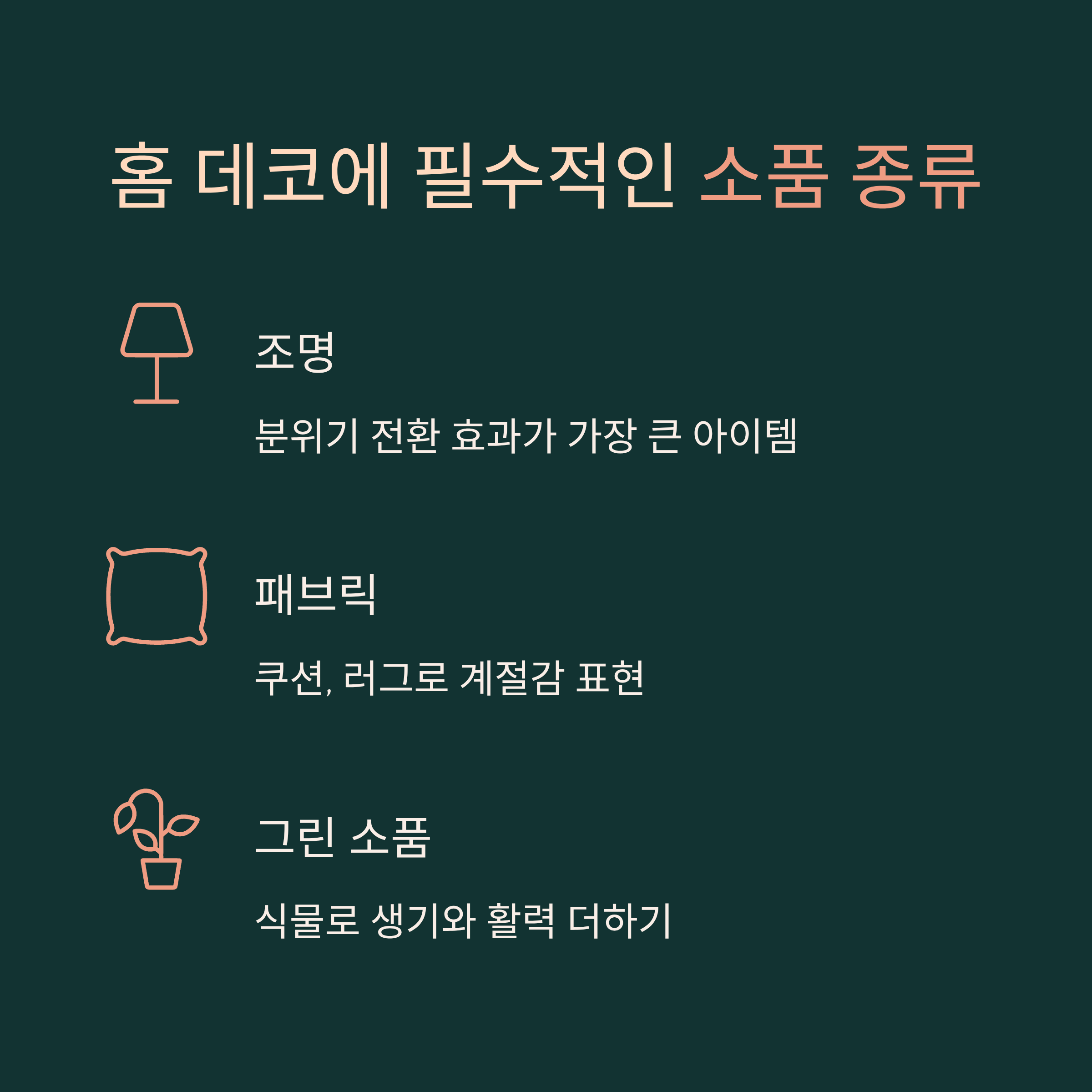 👉 위 내용은 일반적인 인테리어 팁으로, 개인의 공간과 취향에 따라 다르게 적용될 수 있어요. 소품 선택은 생활 패턴과 집의 구조를 고려해 조율하는 게 가장 좋아요.