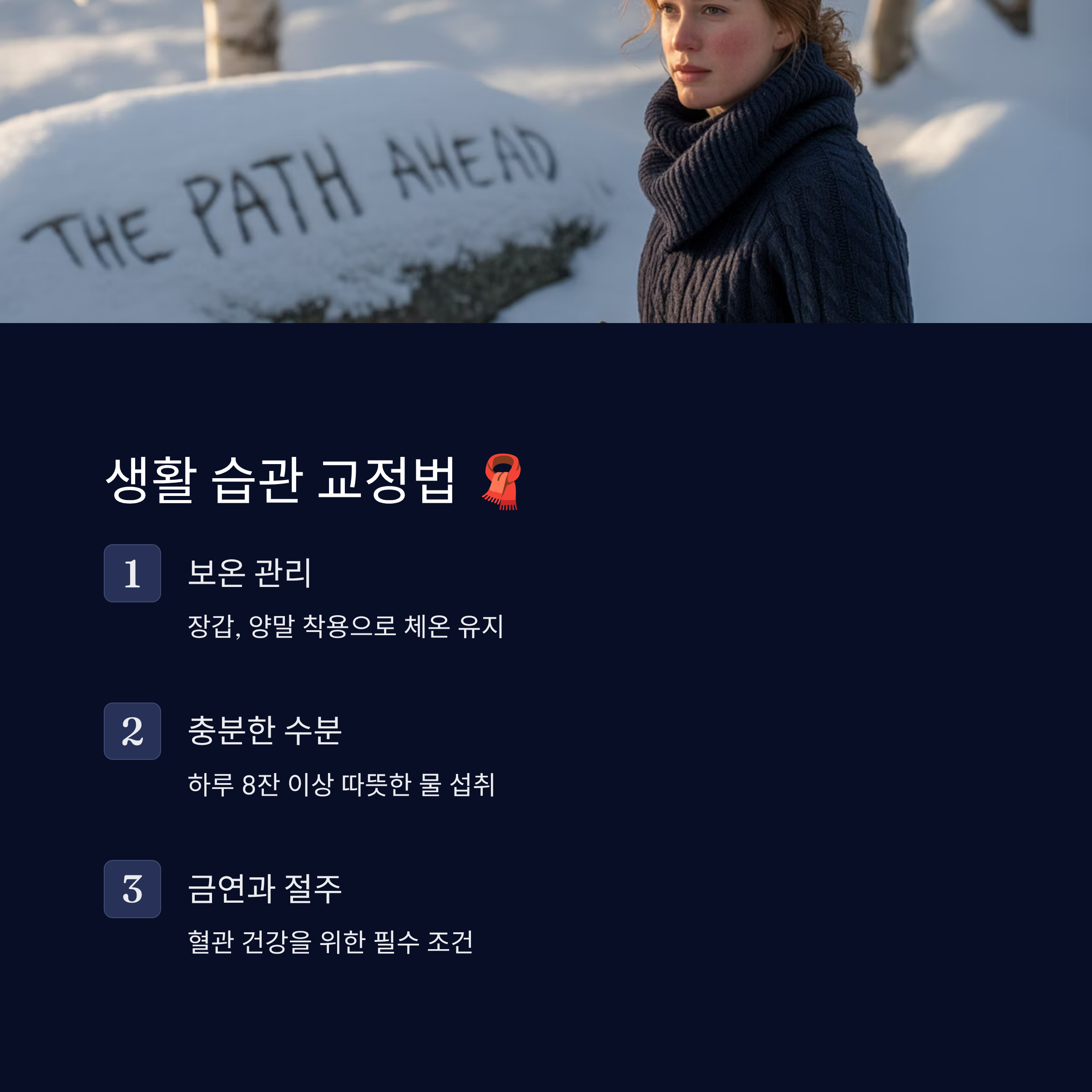 흡연은 혈관 수축을 강화하니 끊는 게 혈류 회복에 큰 도움을 줘요. 스트레스가 강한 날은 코어 웜업 3분 루틴(점핑잭 30초, 스쿼트 30초, 팔 돌리기 30초, 깊은 호흡 60초, 가볍게 제자리 걷기 30초)으로 몸을 덥히고 시작해요.