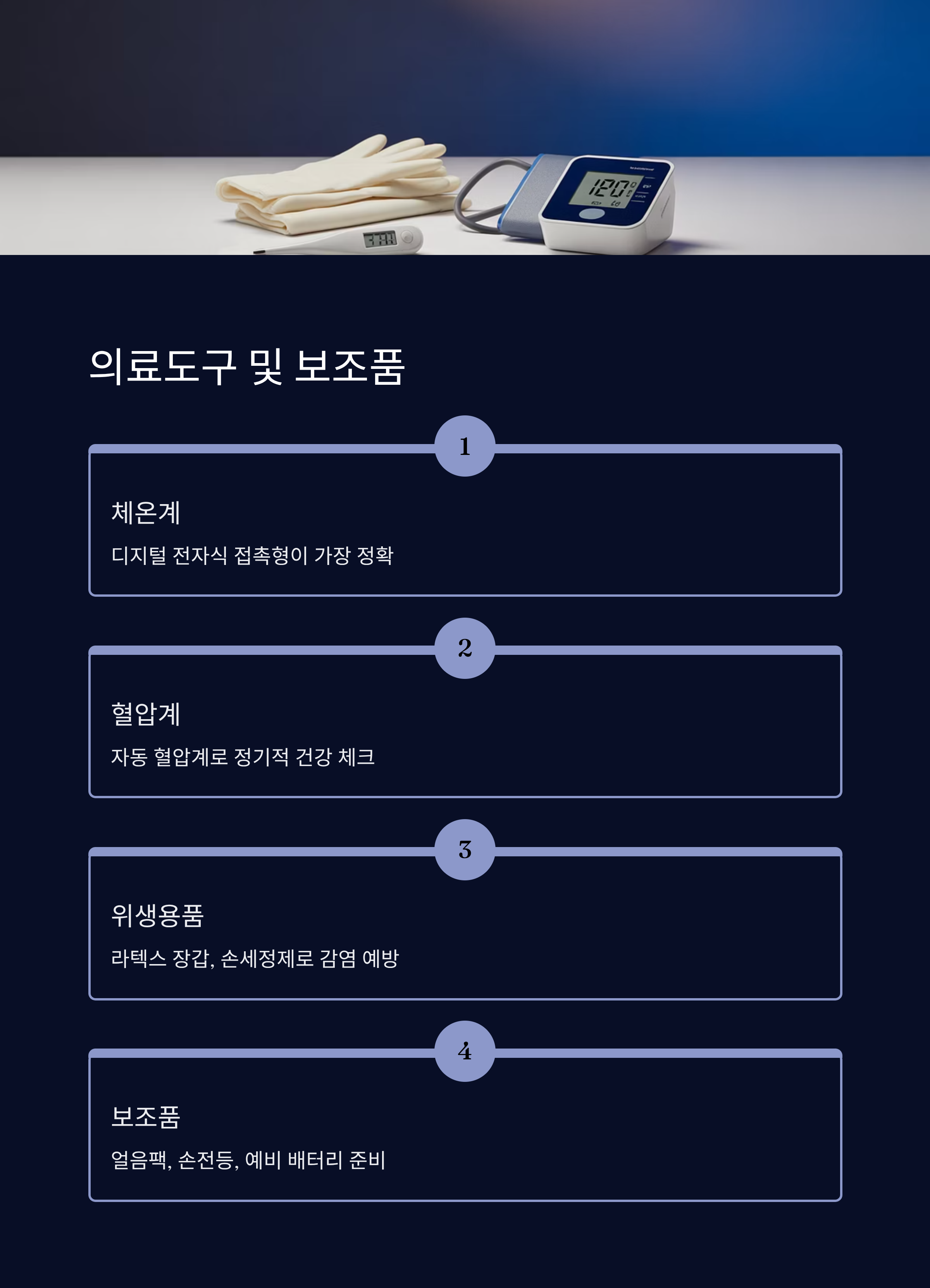 도구는 고장이 없는지 정기적으로 점검하는 것도 중요해요. 특히 체온계나 혈압계는 배터리가 방전될 수 있으니, 예비 배터리까지 함께 보관해두면 완벽하답니다! 🔋