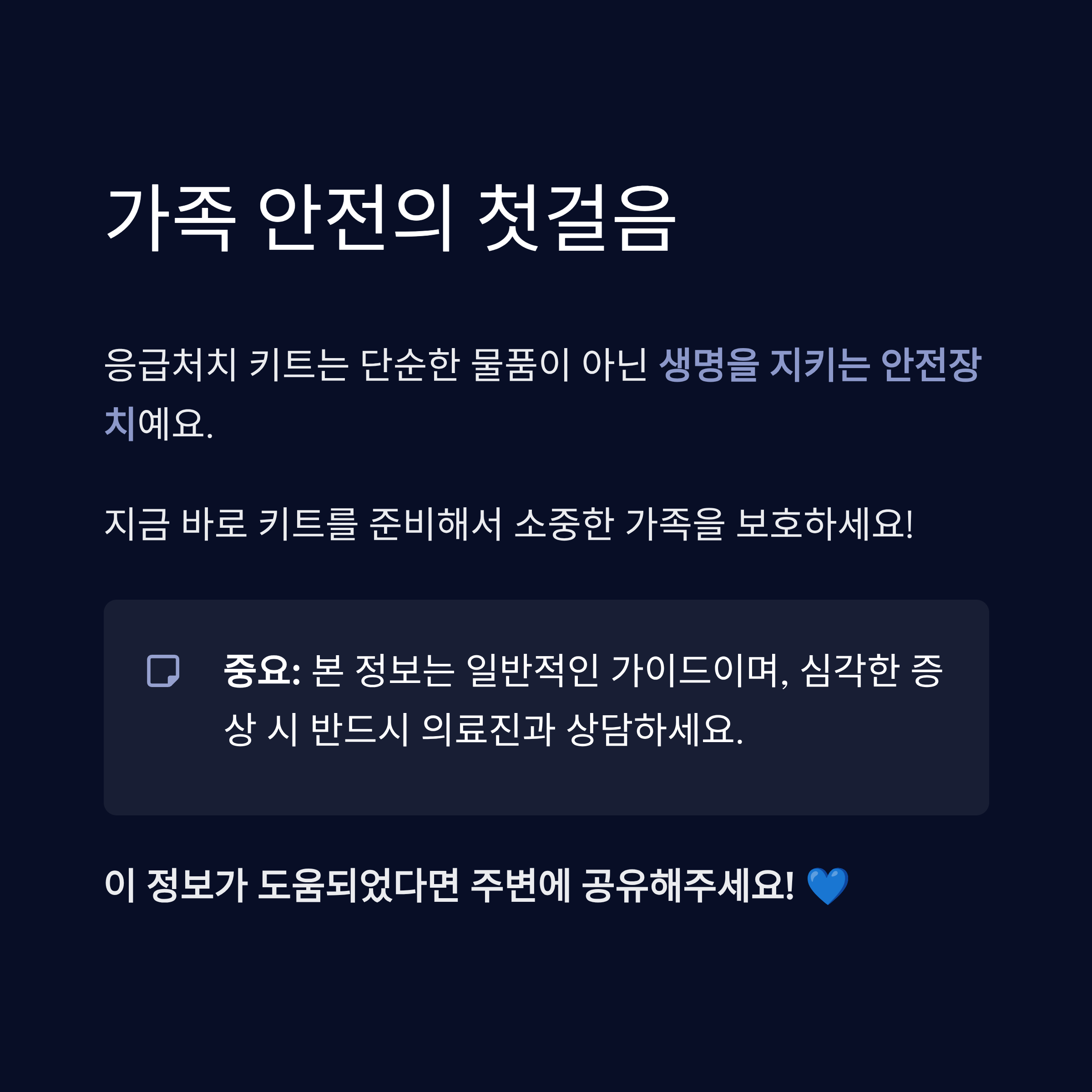 응급처치 키트를 준비하는 건 단순한 준비가 아니라, 위기 상황에서도 가족을 지킬 수 있는 중요한 생활 습관이에요. 😉