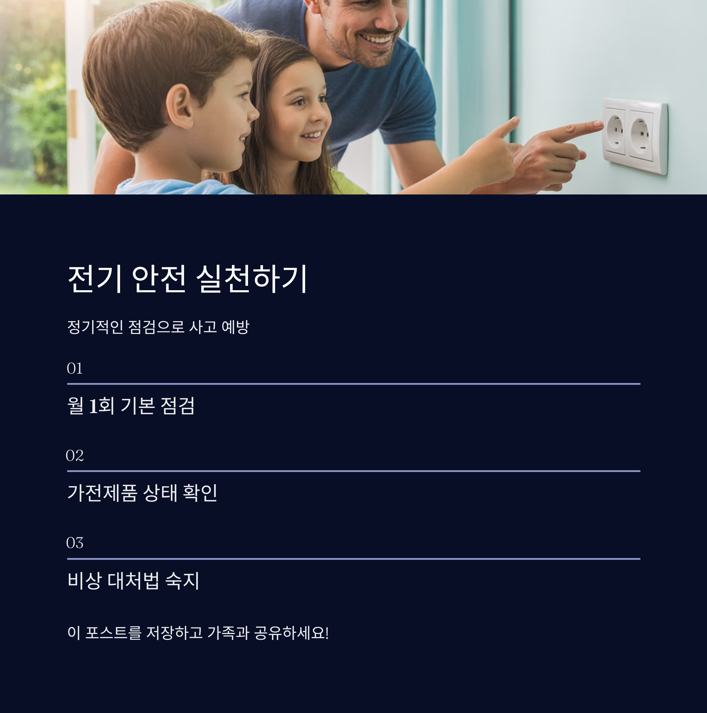 이제 전기 안전 점검의 모든 핵심을 마스터했어요! 일상 속에서 꼭 체크해야 할 항목들을 잊지 말고, 한 달에 한 번씩 이 리스트를 꺼내서 점검해보세요. 우리 모두 안전한 환경에서 살아가길 바라요! ⚡🏡