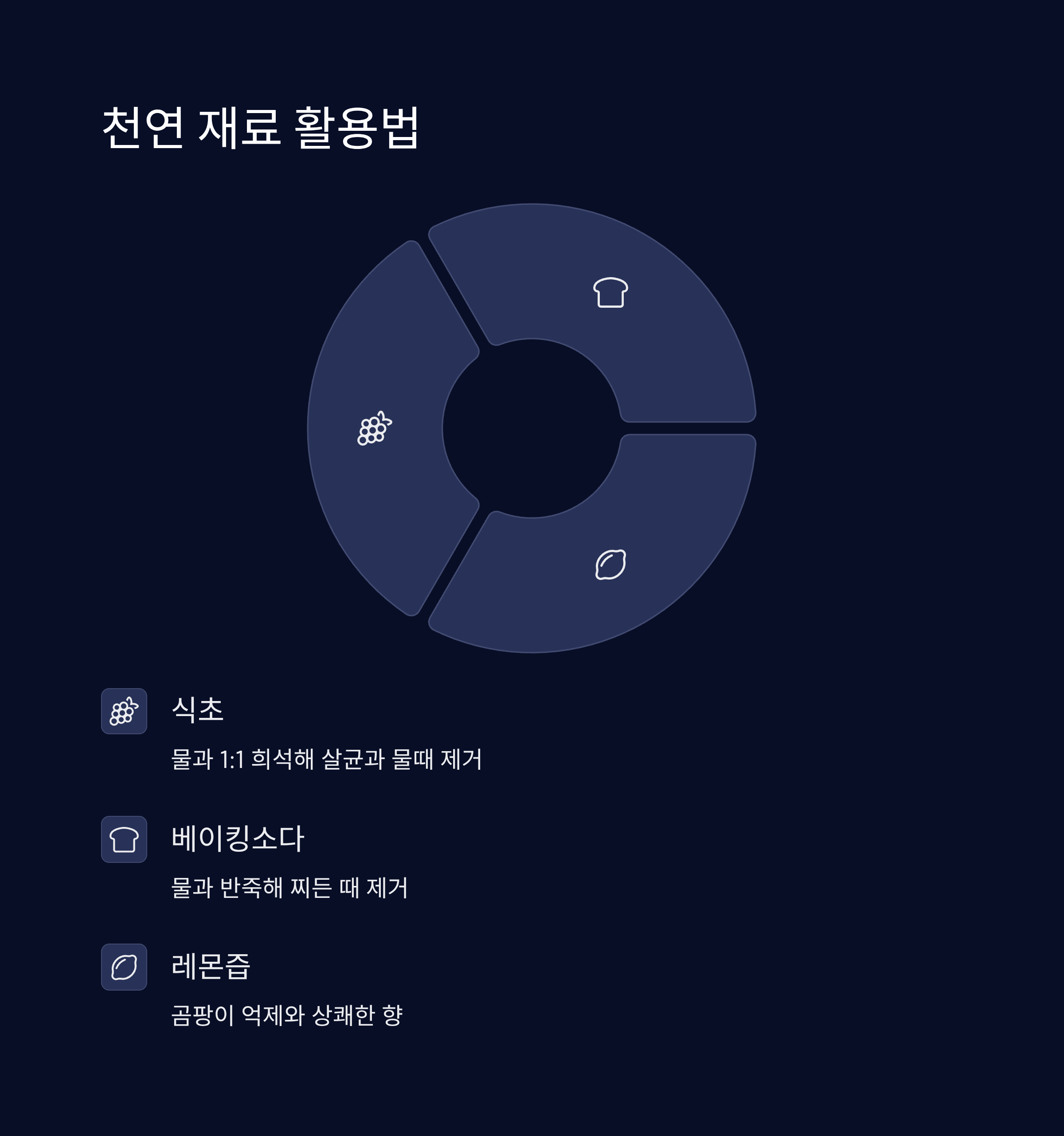 | 3 | 식초+물 혼합액 뿌리기 | 곰팡이 예방 |