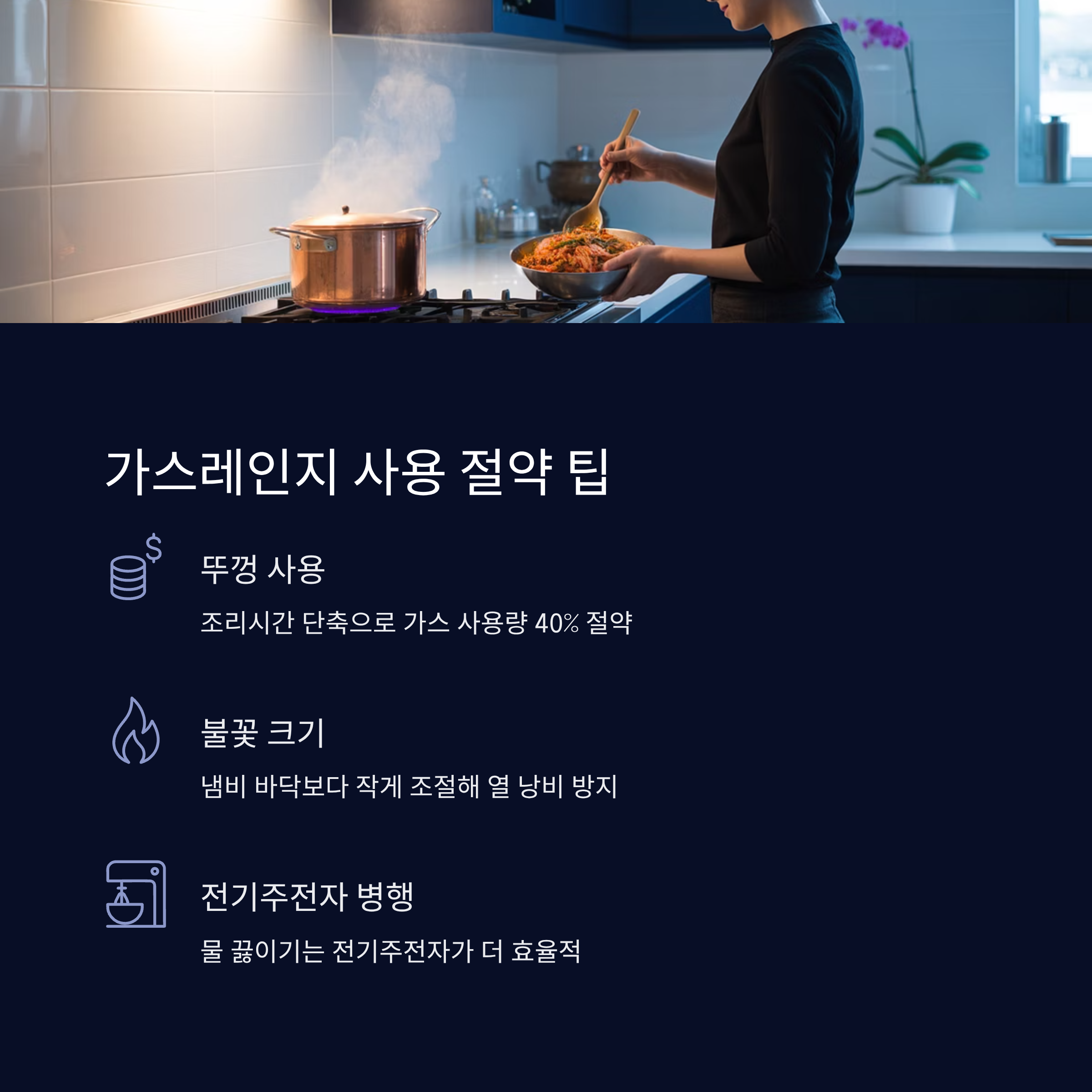 표만 봐도 뚜껑 하나가 얼마나 차이를 만드는지 보이죠? 😄 조리시간과 가스비를 함께 줄일 수 있는 똑똑한 방법들이에요.