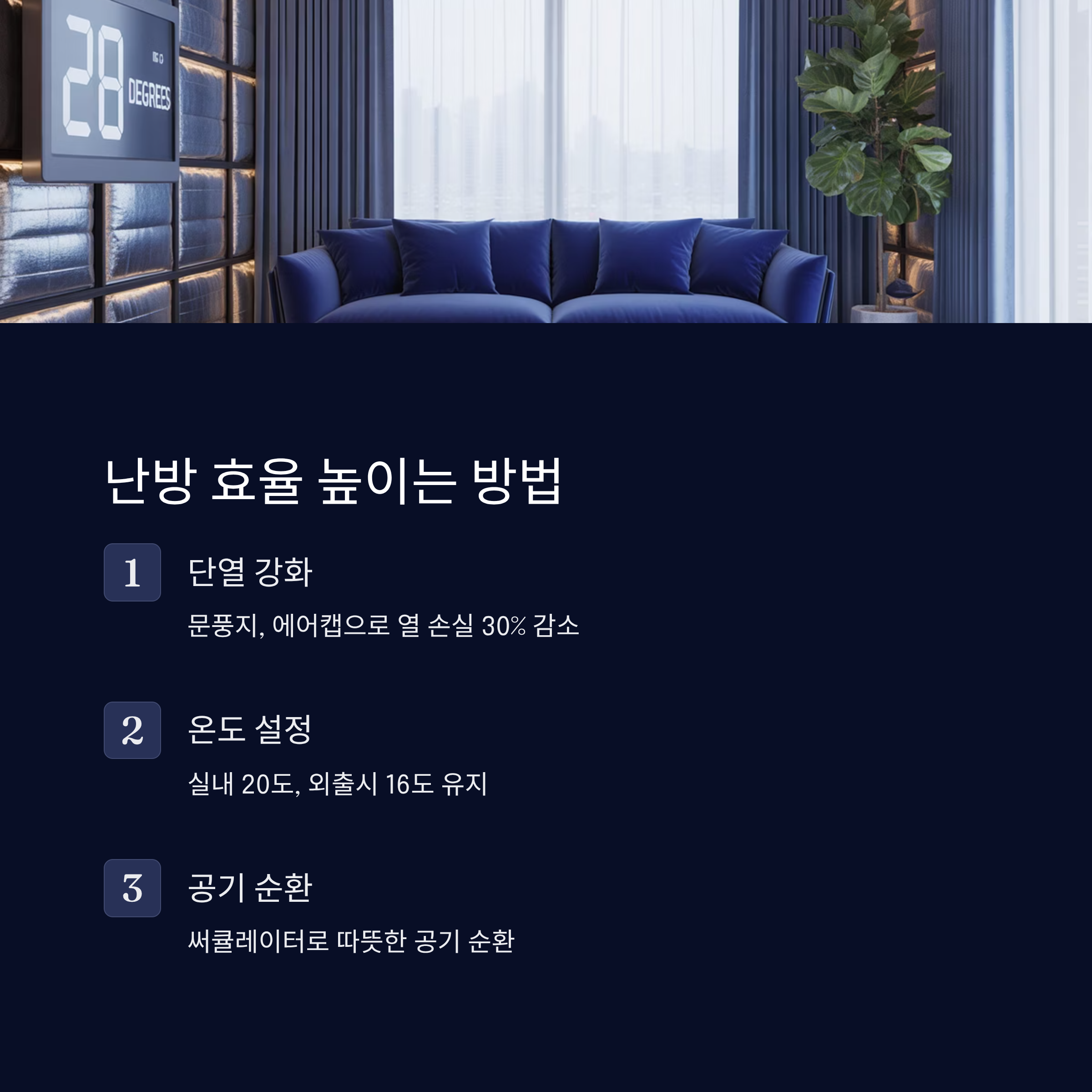 단열은 정말 가성비 좋은 투자인 만큼, 월 1~2만 원만 투자해도 겨울철 난방비가 훨씬 가볍게 느껴질 거예요. 😊