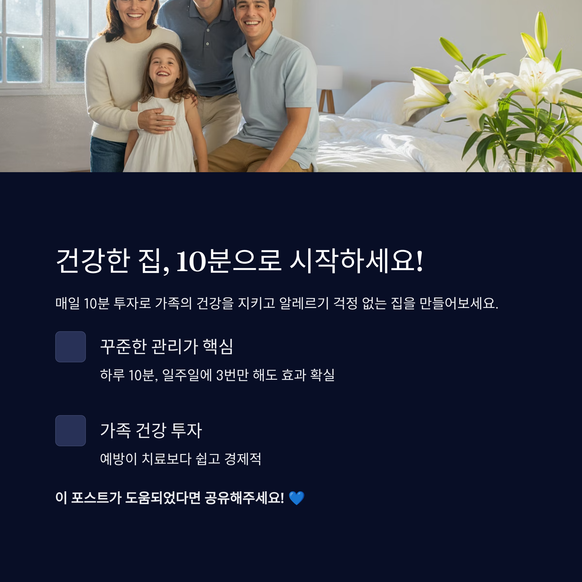 이처럼 작지만 강력한 영향을 주는 집먼지 진드기는 무시하면 안 돼요. 지금부터라도 하루 10분 투자로 꼼꼼히 관리해보세요!