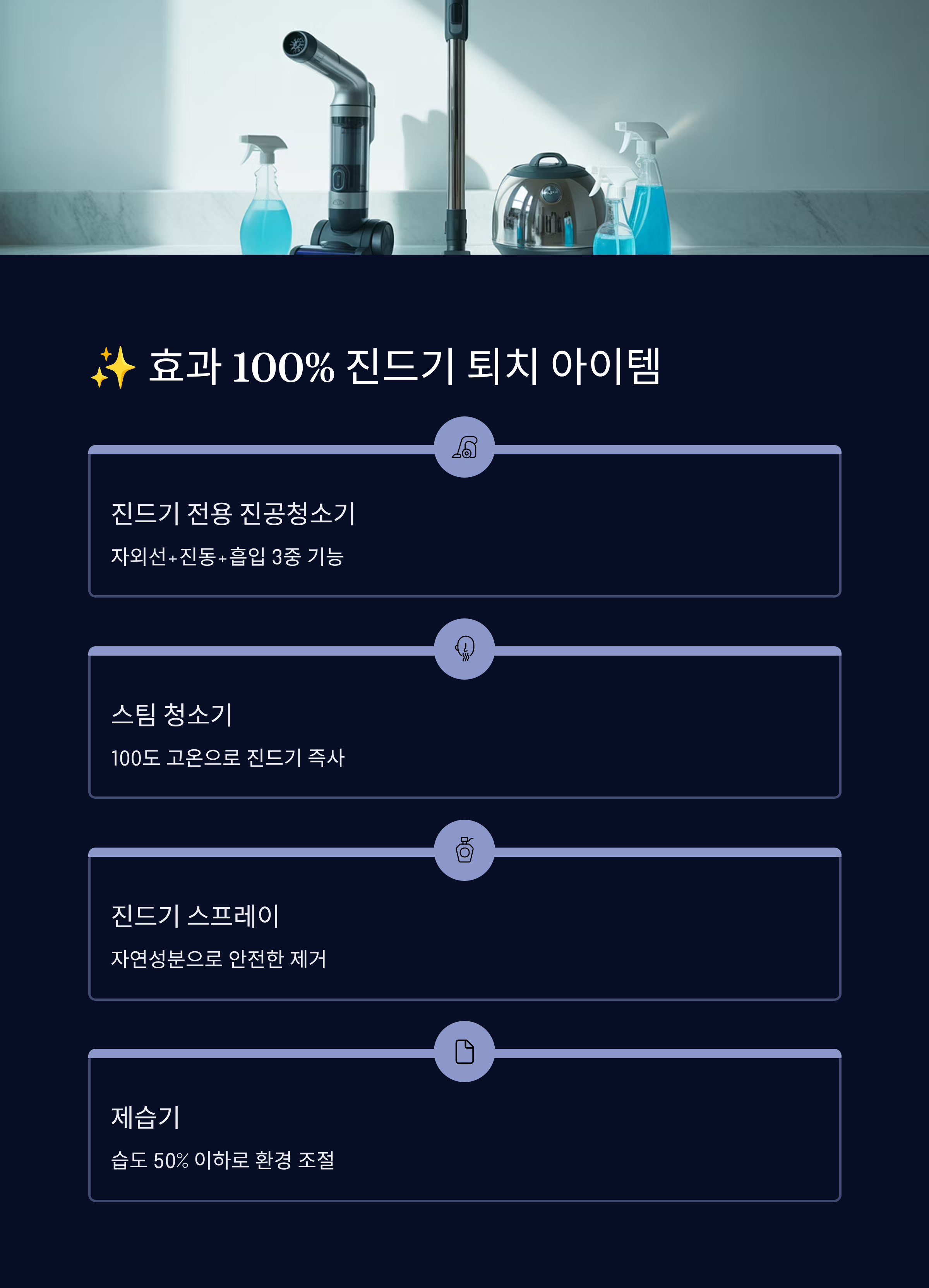 1️⃣ 진드기 전용 진공청소기 자외선+진동+흡입 기능이 결합된 제품들이 인기예요. 침대 매트리스에 특히 효과적이에요.