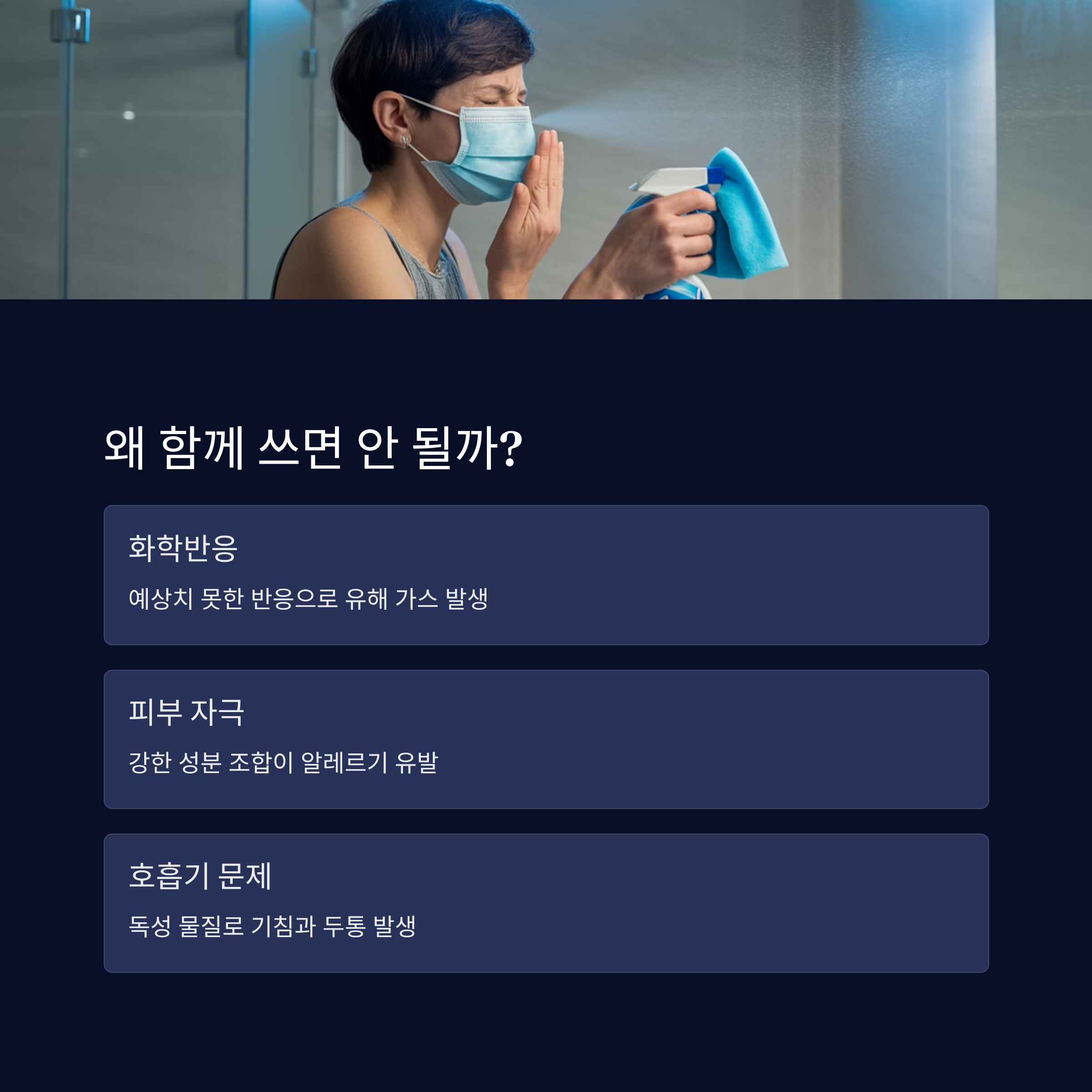 특히 밀폐된 욕실이나 창문이 닫힌 주방처럼 환기가 안 되는 공간에서 이 두 가지를 동시에 쓰면, 그 위험성은 배가돼요. 눈이 따갑거나, 목이 간지럽거나, 기침이 계속 나면 즉시 사용을 중단하고 환기를 시켜야 해요.