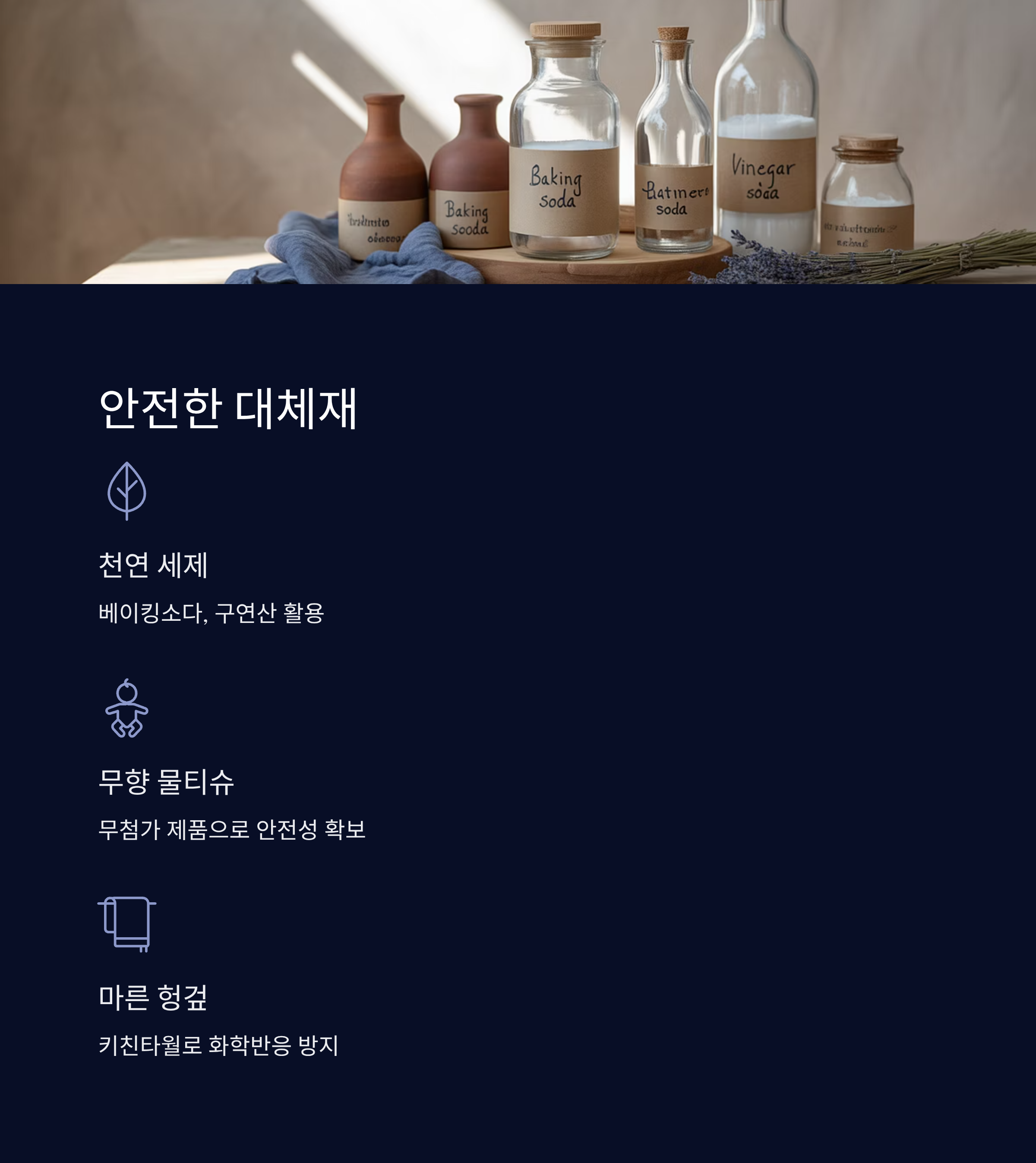 만약 세제와 물티슈를 함께 써야 한다면, 보다 안전한 대체재를 선택하는 것이 좋아요. 예를 들어, '천연 성분 기반 세제'나 '무향 무첨가 물티슈'는 화학반응 위험이 훨씬 적어요. 특히 아기 있는 집에서는 이런 제품들이 필수예요.
